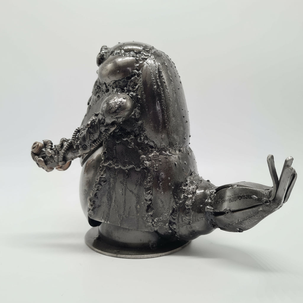Für unsere Figuren verwenden wir ausnahmslos Altmetall, Schrott und alte KFZ Teile verwendet. Die Figur hat keine beweglichen Teile.