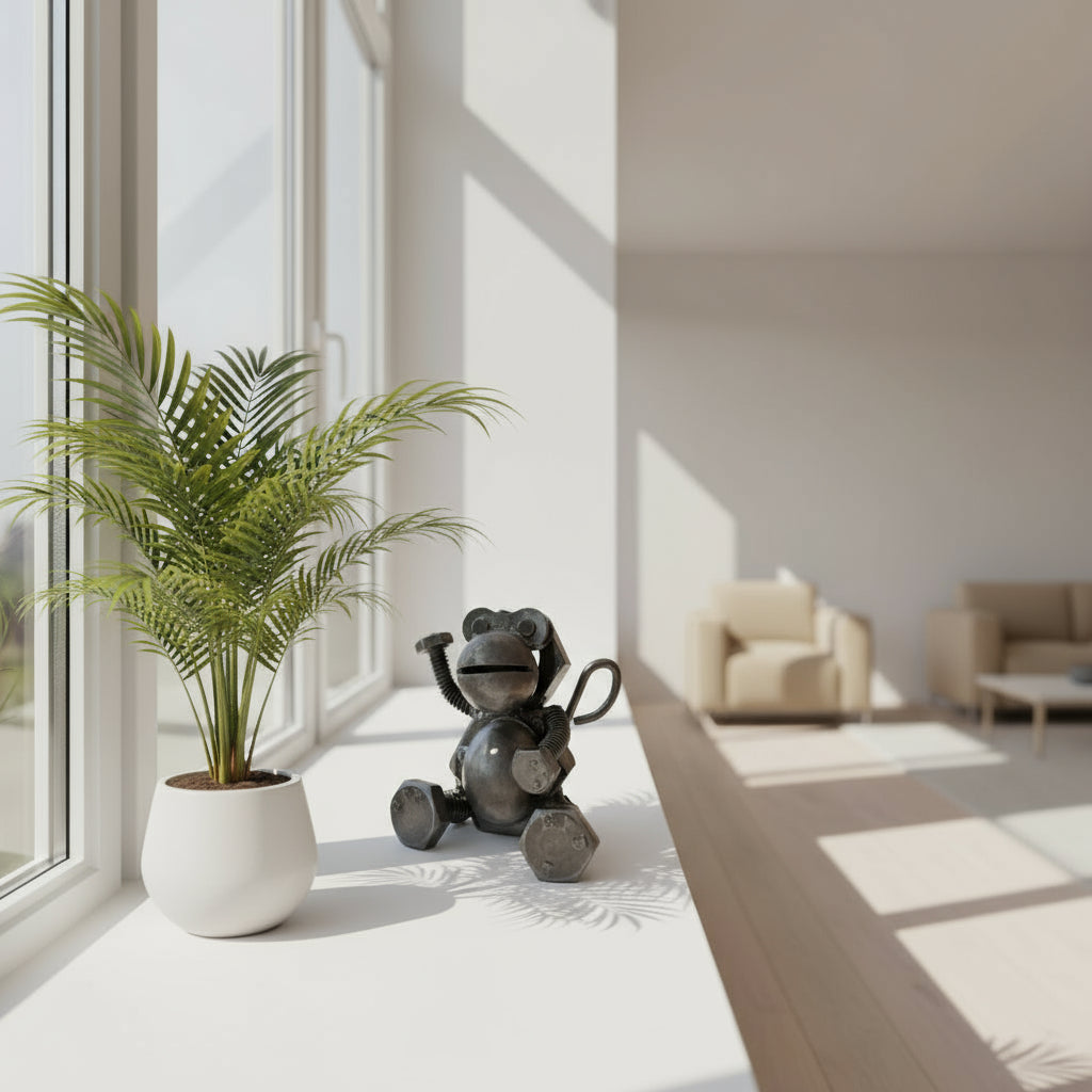 Mit dem winkenden Blick und den liebevoll gestalteten Details bringt das Äffchen Persönlichkeit in jeden Raum. Seine robuste Art bietet einen sicheren Stand.