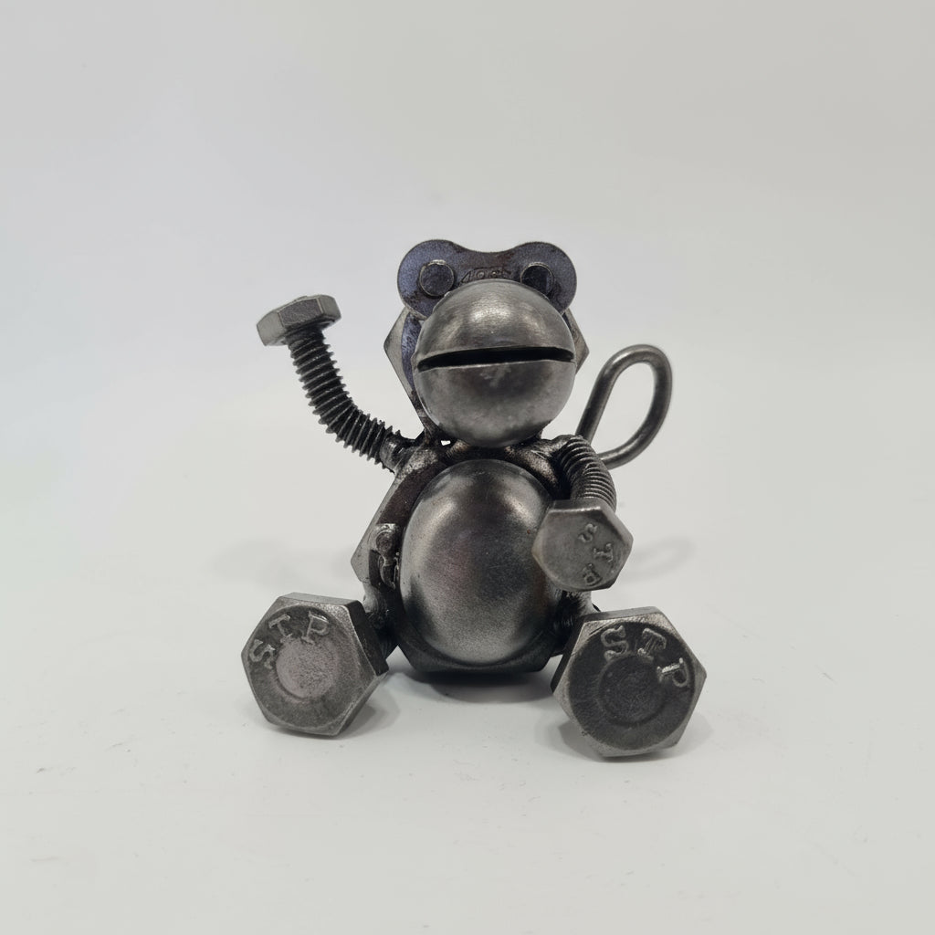 Dieser einzigartige Affe ist ein echter Hingucker, jedes Stück wird in sorgfältiger Handarbeit aus recycelten Fahrzeugteilen und alten Werkzeugen gefertigt – so entstehen aus der Vergangenheit charmante Unikate mit Charakter.