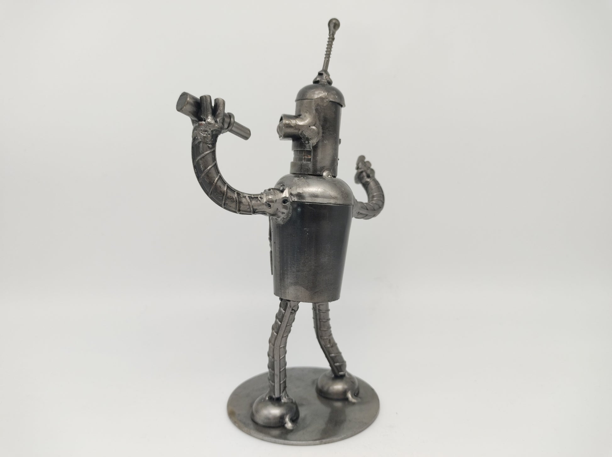 Unsere Bender Futurama Metallfigur ist perfekt für alle Fans der Serie! Hergestellt aus recyceltem Altmetall, ist jede Figur einzigartig und umweltfreundlich. Mit Liebe zum Detail und der hochwertigen Verarbeitung ist diese Figur ein echtes Highlight in jeder Sammlung. Hol dir jetzt deine eigene Bender Figur und zeige deine Begeisterung für Futurama. Dieses Kunststück hat keine beweglichen Teile.