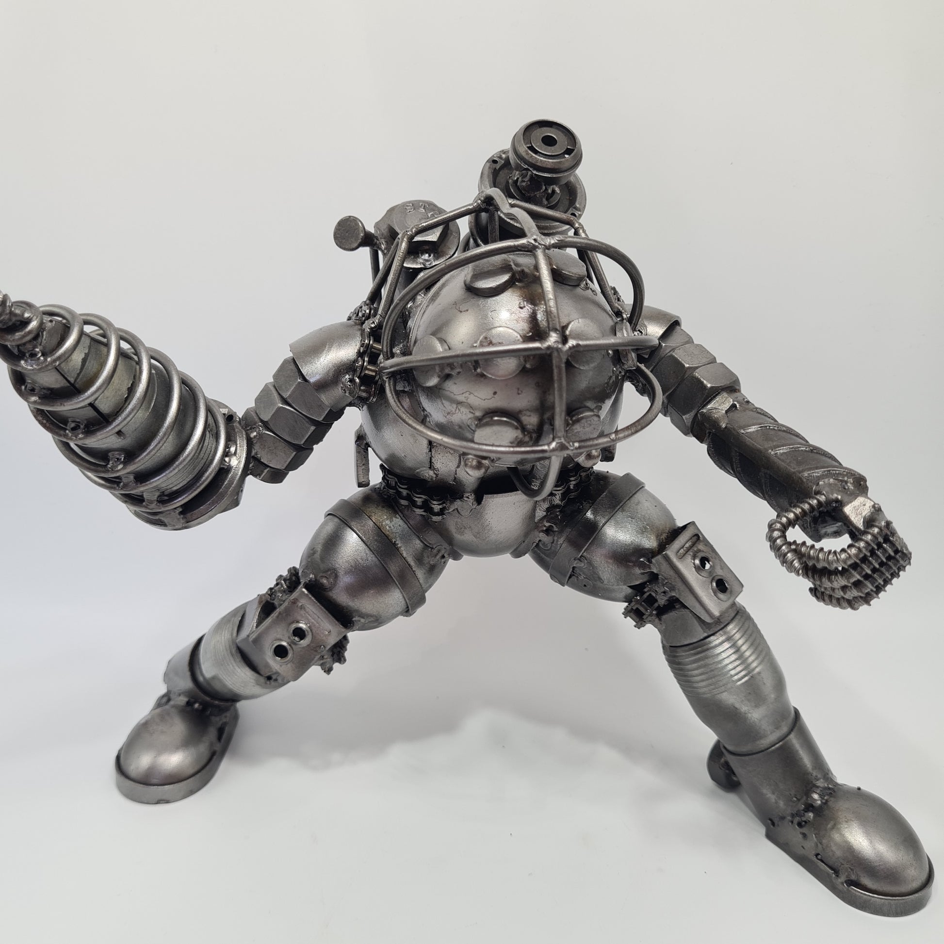 Tauchen Sie ein in die faszinierende Welt von Bioshock – mit dieser einzigartigen Gaming-Skulptur, die vollständig aus recyceltem Metall gefertigt wurde. Inspiriert vom legendären Big Daddy und dem unverwechselbaren Steampunk-Stil des Spiels, entsteht in liebevoller Handarbeit ein echtes Sammlerstück für Gamer, Kunstliebhaber und Fans postapokalyptischer Ästhetik.