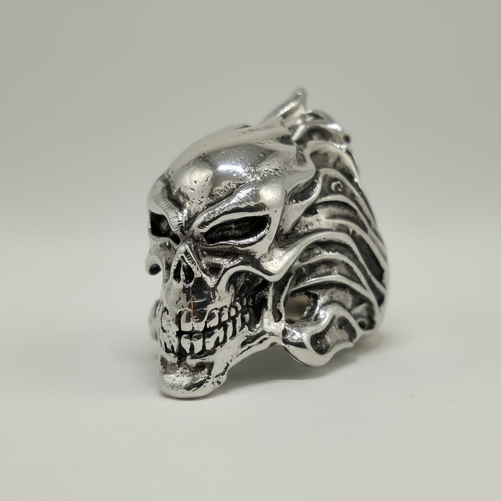 Entfachen Sie das Feuer der Furchtlosigkeit an Ihrer Hand! Unser exklusiver Ghost Rider Metallring ist eine kraftvolle Hommage an den Rächer der Nacht. Dieses Schmuckstück fängt die düstere Atmosphäre und die ungebändigte Energie des Ghost Riders ein und verwandelt sie in ein markantes Accessoire aus massivem Metall.