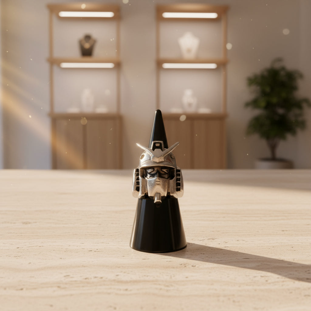 Tauchen Sie ein in die Welt der Mechas und Sci-Fi mit unserem einzigartigen Gundam Head Ring, kunstvoll gefertigt aus hochwertigem Schrottmetall. Dieser Ring ist nicht nur ein Schmuckstück, sondern auch eine beeindruckende Hommage an die ikonischen Gundam-Roboter.