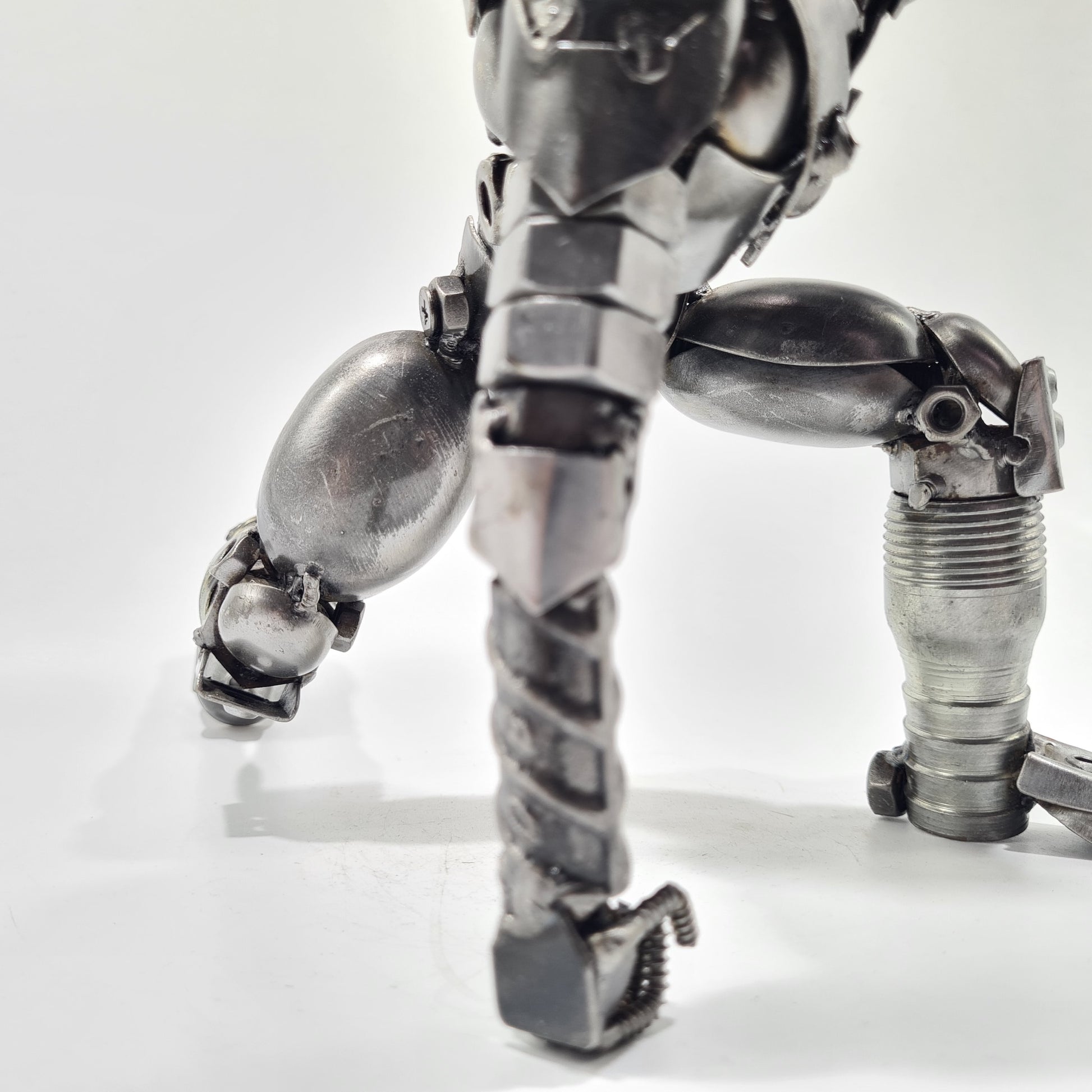 Hol dir jetzt die Iron Man Figur aus recyceltem Metal! Jede Figur ist ein Unikat, hergestellt aus Altfahrzeugen und Werkzeugen. Der Superheld in Helden Pose ist ein echter Hingucker und ein Statement für Nachhaltigkeit und Umweltschutz. Perfekt für Sammler und Fans von Iron Man. Die Figur hat keine beweglichen Teile.