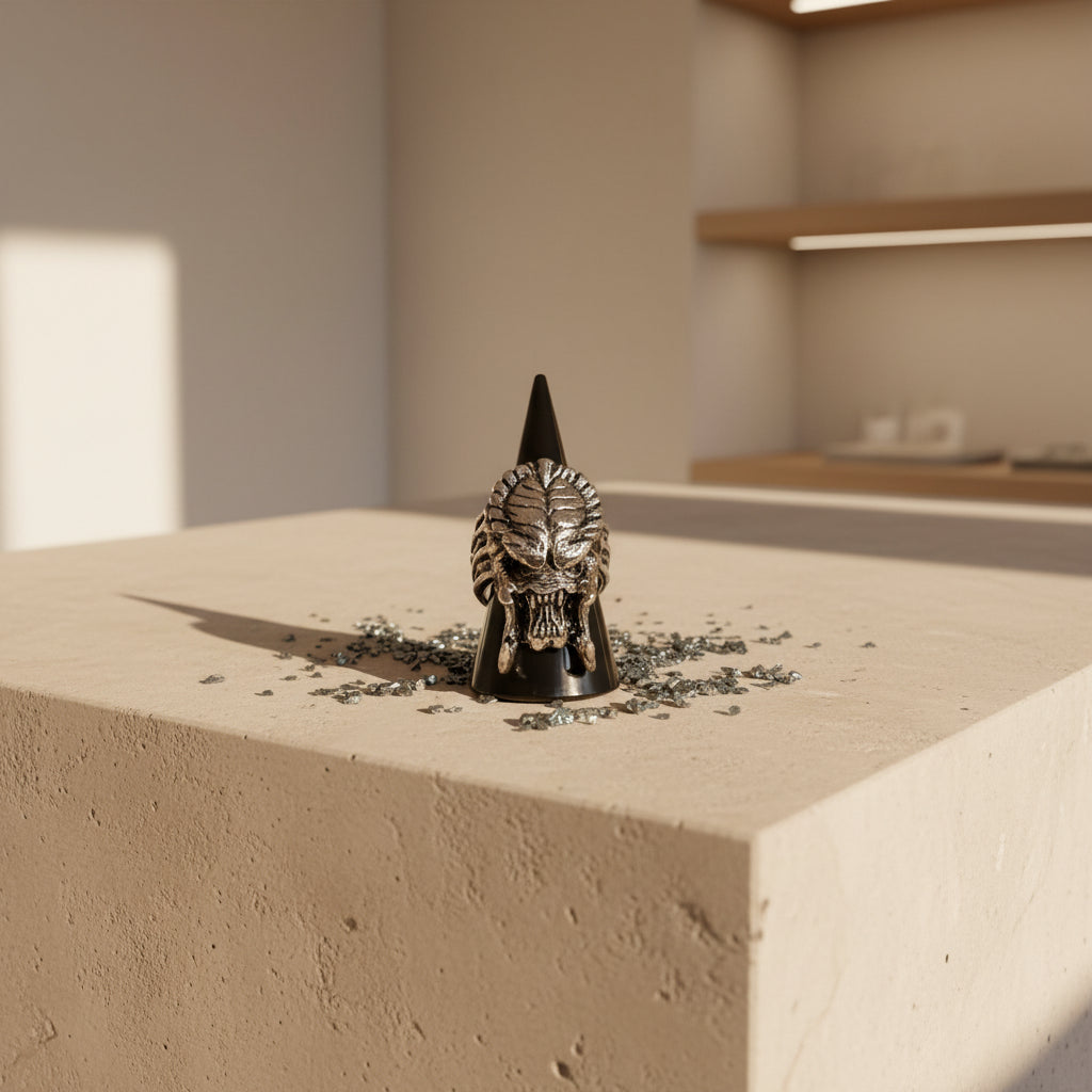 Treten Sie ein in die Welt der Jäger und Krieger mit unserem einzigartigen Predator Ring, kunstvoll gefertigt aus hochwertigem Altmetall. Dieser Ring ist nicht nur ein Schmuckstück, sondern auch eine beeindruckende Hommage an den ikonischen Predator aus dem gleichnamigen Sci-Fi-Franchise.