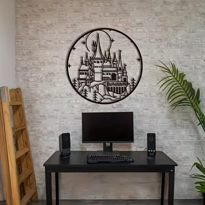 Schloss Hogwarts Wanddekoration aus Metall – Handgefertigte Wandkunst für Fantasy Fans