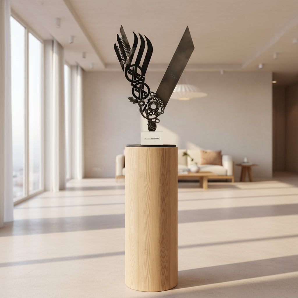 Tauche ein in die Welt des Steampunks mit unserem einzigartigen Viking Logo , das handgefertigt wurde aus Altmetall und Werkzeugen, angelehnt und inspiriert durch die Erfolgsserie Vikings. Die rustikale und grobe Eleganz macht dieses Stück zu einem echten Hingucker. Ausgearbeitet mit detailreichen Elementen.