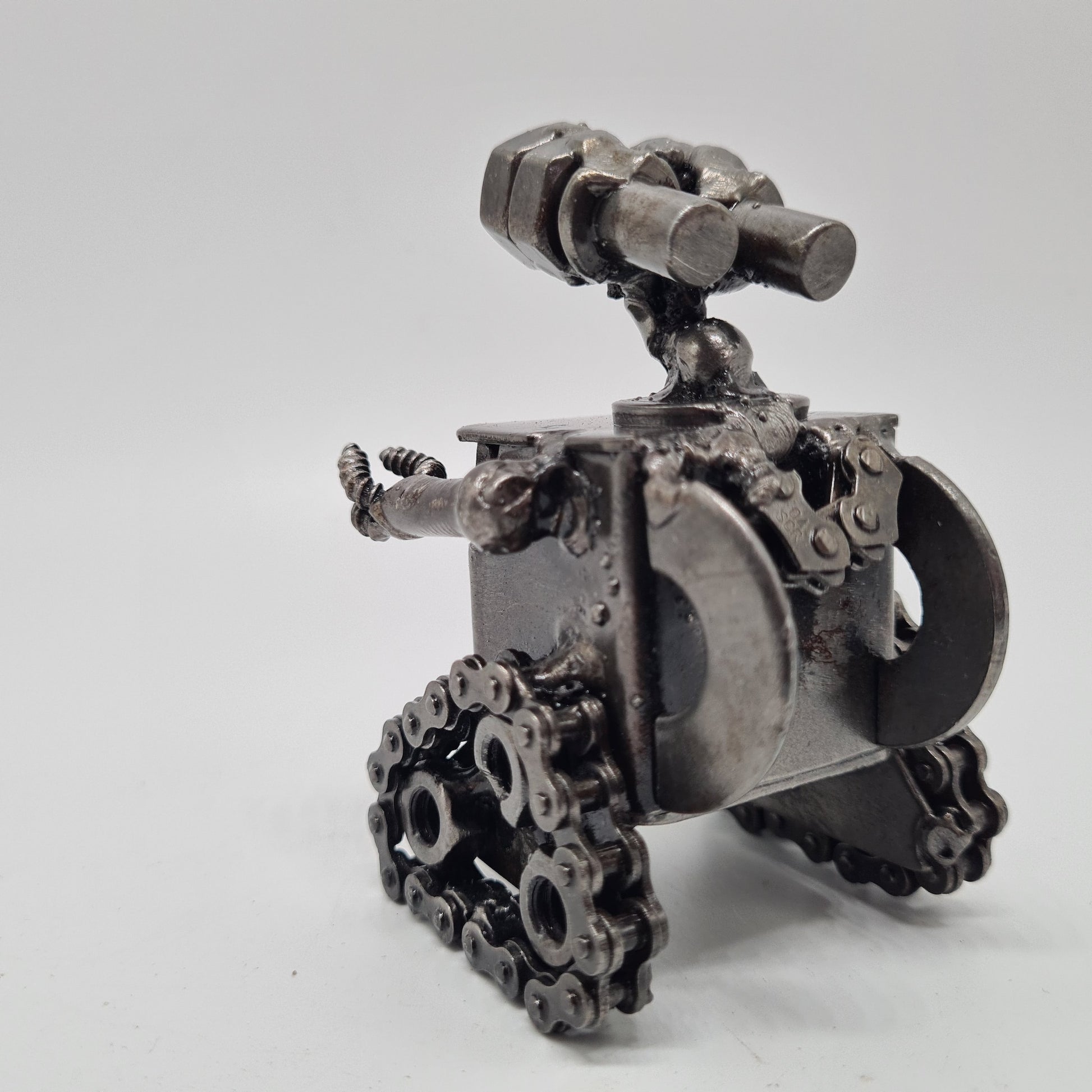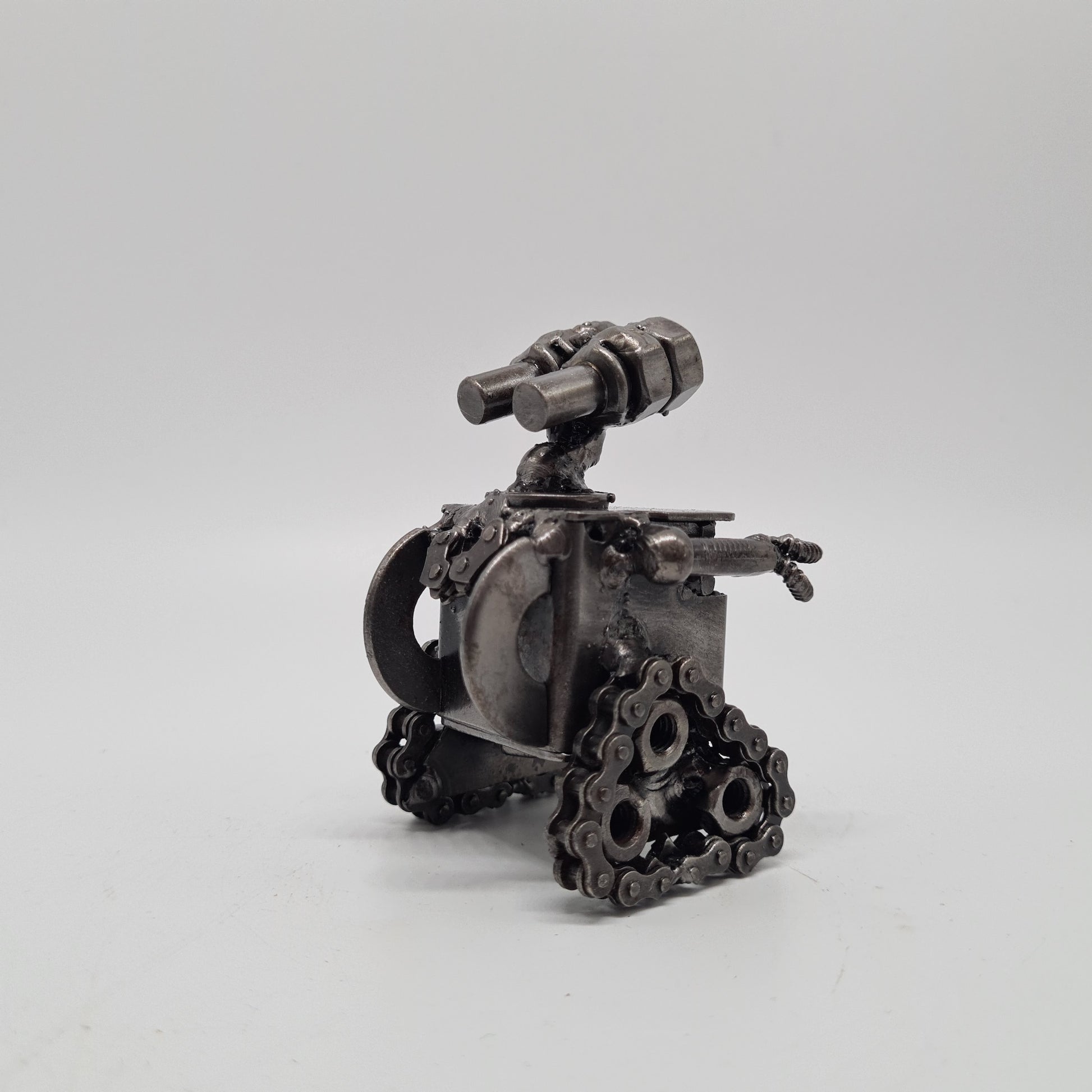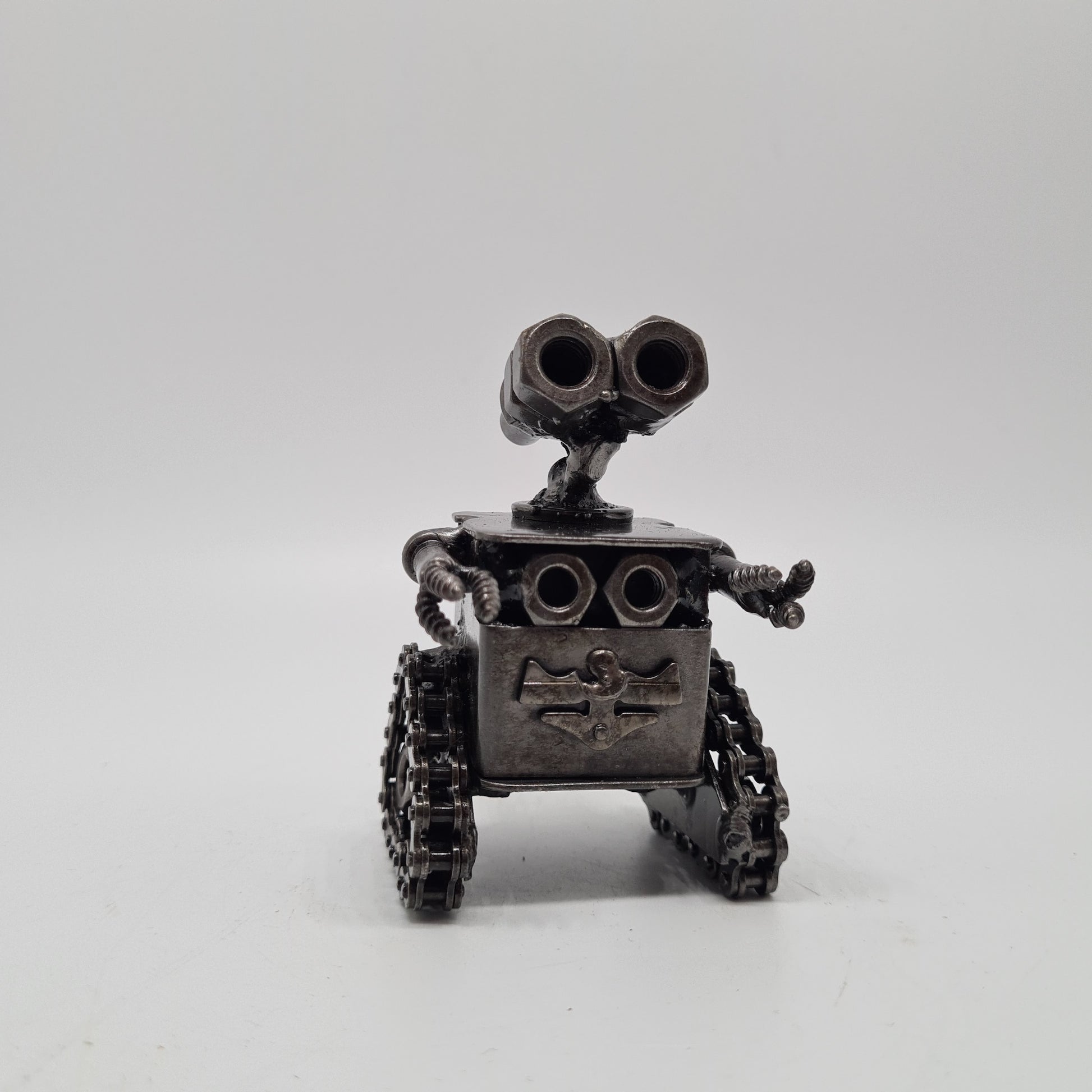 Unser Held aus Wall-E der letzte räumt die Erde auf. Der kleine Haushaltsroboter der klaglos seinen Dienst verrichtet und Müll zusammenpresst um ihn zu Wolkenkratzern aufzustapeln. Er macht seinen Job seit nunmehr als 700 Jahren. Holt euch die durch den Film inspirierte Figur nach Hause - er macht euch vielleicht nicht den Haushalt oder bringt euren Müll hinaus ist aber dennoch ein netter kleiner Geselle. Passend wird dieser kleine Freund aus alten Schrott Metallteilen hergestellt und ist somit ein Unikat.